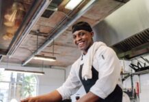 מערבבים פנימה את פתיתי הקוקוס ויוצקים על גבי בסיס הבראוניז בשכבה אחידה.